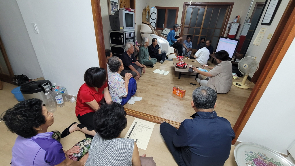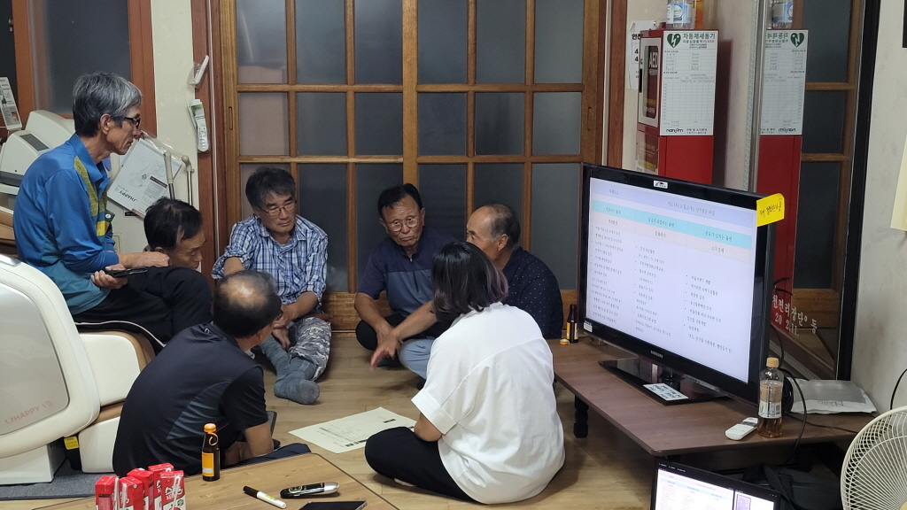 8월 22일(금) 저녁 8시 율현마을 회관에서는 현장포럼이 진행되었습니다. 율현마을은 작년 으뜸마을가꾸기사업까지 완료한 마을로 올해는 2월부터 사전 설명회와, 워크숍 3회 선진지 견학 등을 거쳐 오늘 5번째로 만나 마무리 현장포럼을 진행했습니다. 그동안 주민들의 의견을 모아 다듬었던 마을 발전 계획을 정리하고 주민들이 공유하는 자리였습니다. 이 발전 계획을 토대로 다음 4단계 사업인 자율개발 사업에 도전하게 됩니다. 율현 마을은 포도 농사가 많은 마을로 지금은 수확 철이라 너무 바쁜 나날을 보내고 있습니다. 낮에 농사일을 마치고 저녁 시간에 모여 회의를 진행할 정도로 열정이 있는 마을입니다. 올해 주민들이 만든 마을 발전 계획을 토대로 한발 한발 나아가길 기대합니다.