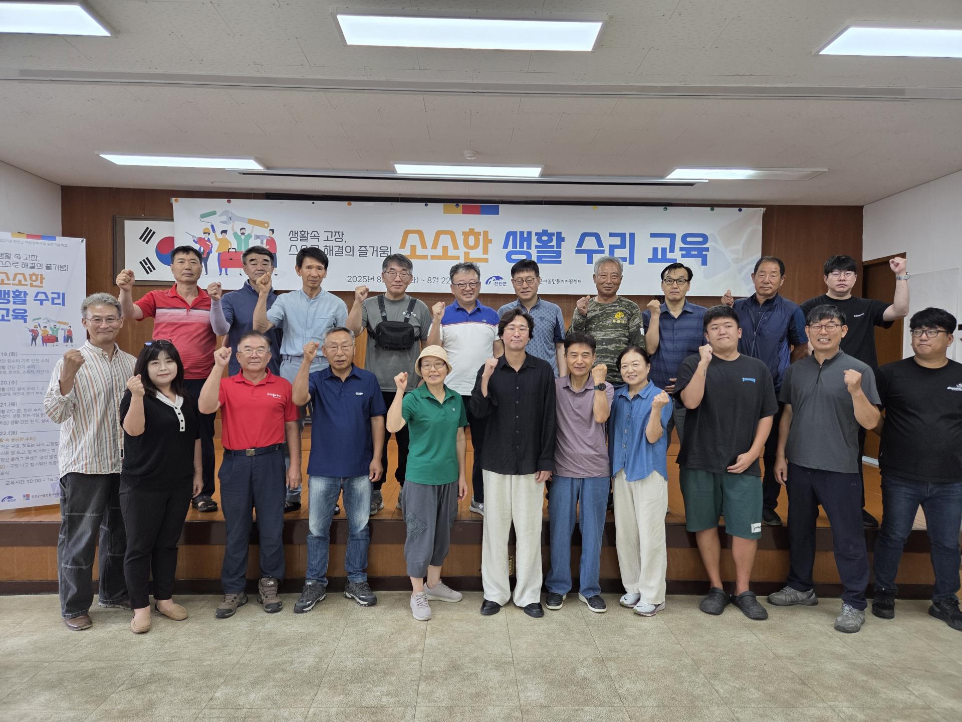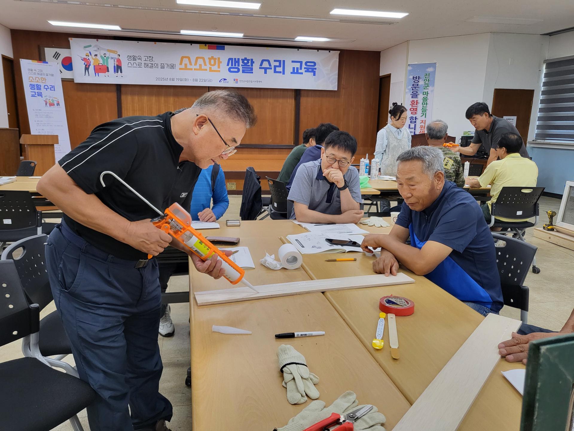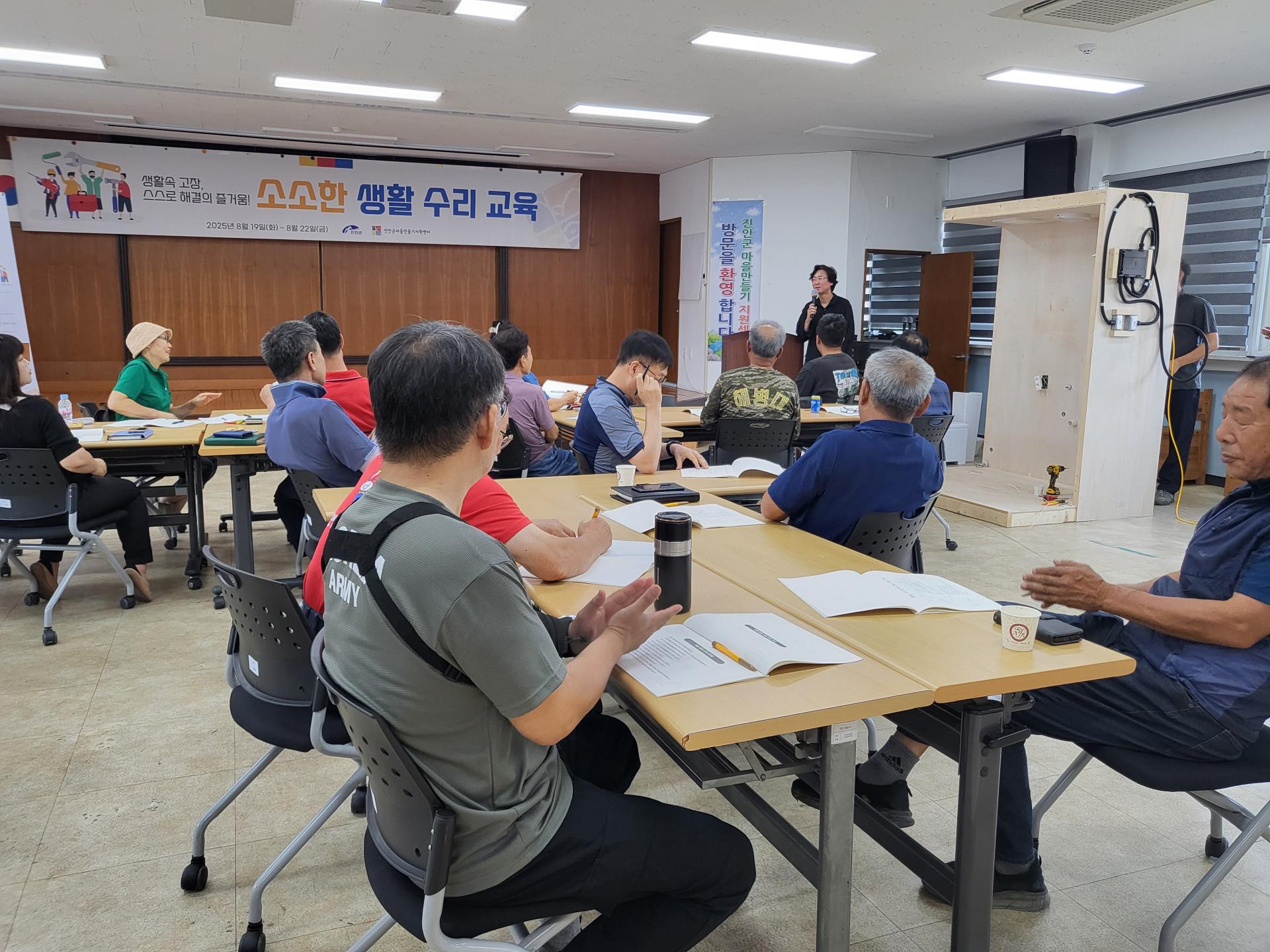 진안군마을만들기지원센터는 지난 8월 19일(화)부터 22일(금)까지 나흘간 ‘농촌기술학교 2기’ 교육을 진행했습니다. 이번 교육은 지난 3월 진행된 1기에 이어 주민들의 높은 호응에 힘입어 마련된 것으로, 진안군 역량강화사업의 일환으로 추진되었습니다. ‘소소한 생활 수리 교육’이라는 주제로 운영된 농촌기술학교는 지역민들에게 자립적인 생활 기반을 마련하고, 기술 공유를 통해 공동체 내 관계 형성과 사회적 소통 문화를 촉진하는 데 목적이 있습니다. 2기 교육은 전체 일정의 90% 이상이 실습으로 구성되어, 참여자들이 실제 생활에서 필요한 기술을 체득할 수 있도록 구성되었습니다. 총 23명의 교육생은 첫날 생활 속 집수리에 필요한 기초 안전 수칙과 간단한 이론 강의를 들은 후, 곧바로 실습에 돌입했습니다. 주요 실습 내용은 ▲전기 스위치 및 플러그 교체, ▲수전(수도꼭지) 수리, ▲환풍기 점검, ▲문 경첩 조정, ▲창문 레일 수리 등 전문가를 부르기엔 애매하지만 생활에 꼭 필요한 간단 수리 기술들이 포함되었습니다. 교육을 수료한 한 참여자는 “전에는 수리할 일이 생기면 늘 전문가를 불러야 했는데, 이젠 웬만한 건 스스로 해결할 수 있을 것 같아 뿌듯하다”며 만족감을 나타냈습니다.